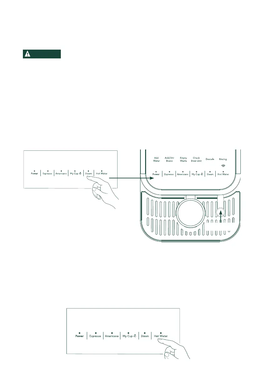 L'eau chaude sera distribuée lorsque le bouton Eau chaude est enfoncé.