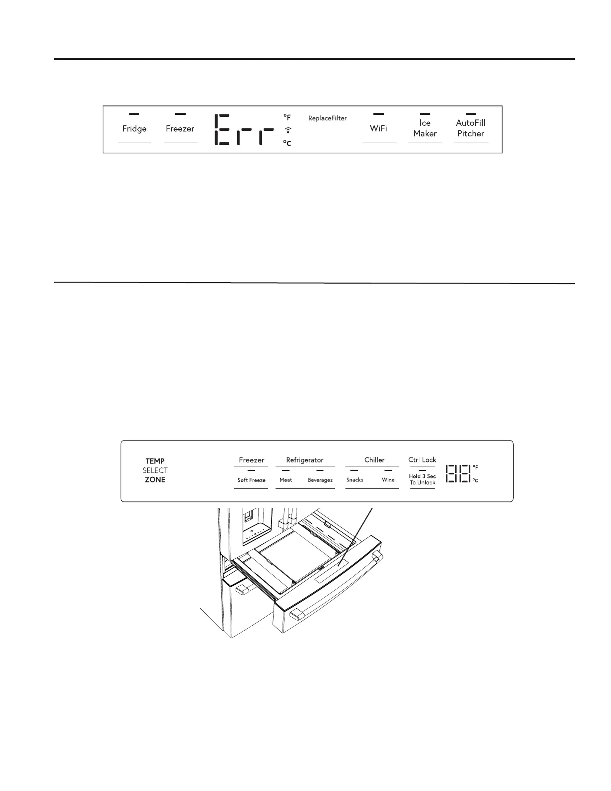La température dans le tiroir convertible est sélectionnée en pressant le type d’aliment à conserver dans le tiroir. Les