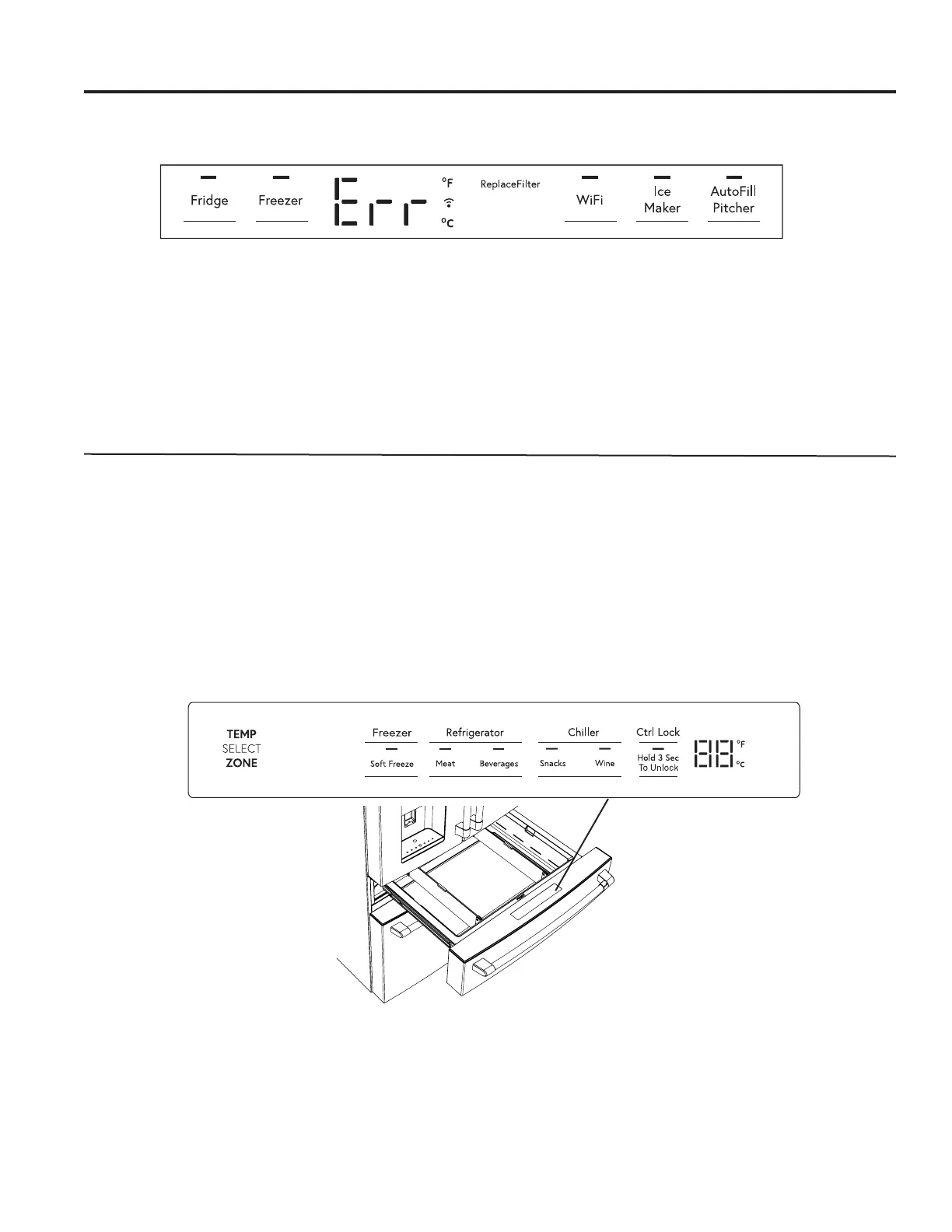 Temperature in the Convertible Drawer is selected by pressing the food item to be kept in the drawer.