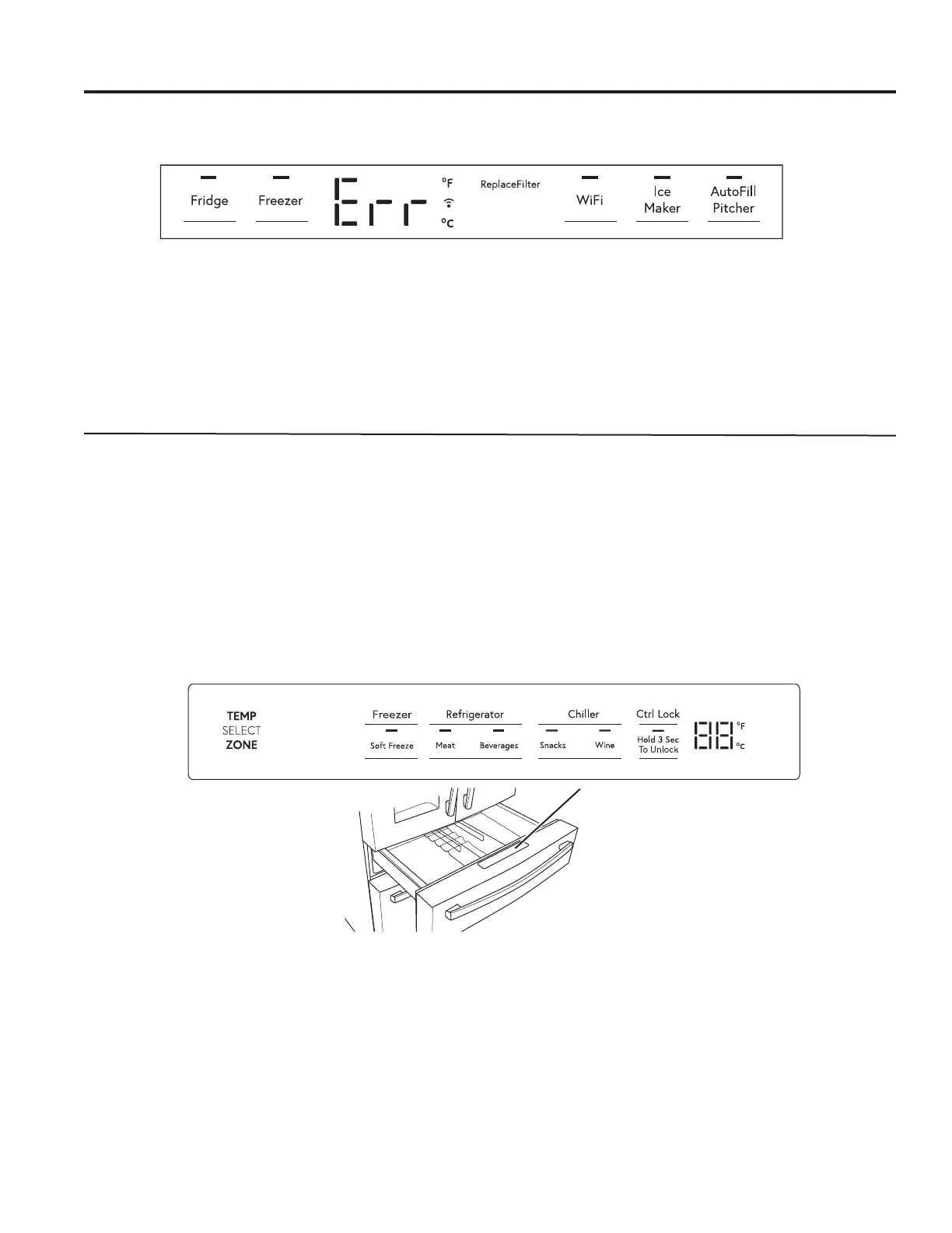 • Err (Error) cuando no haya ningún filtro presente o se haya instalado un filtro equivocado.