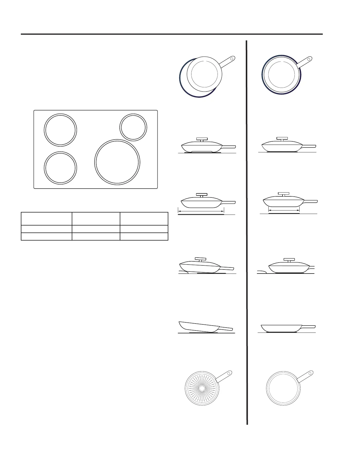 Use flat-bottomed pans sized to fit the cooking element