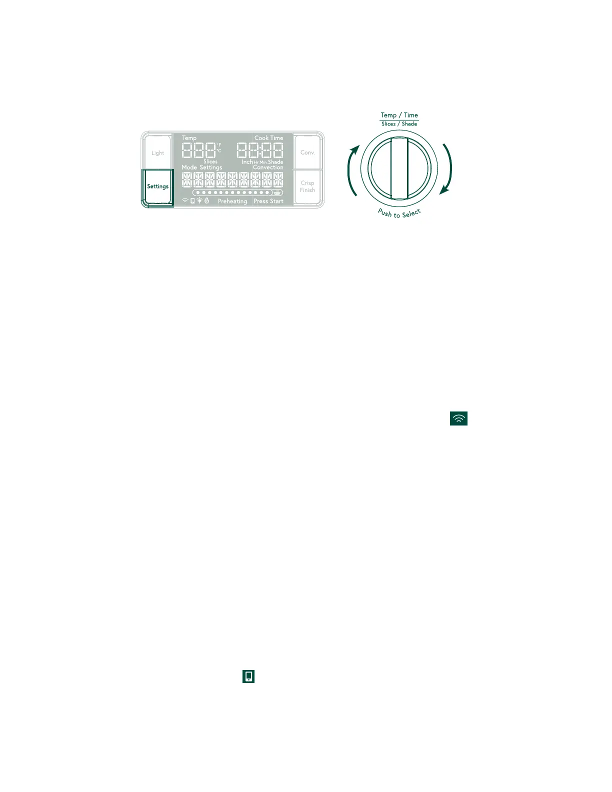 • Press the Settings button and use the Temp/Time knob to select “WIFI”.