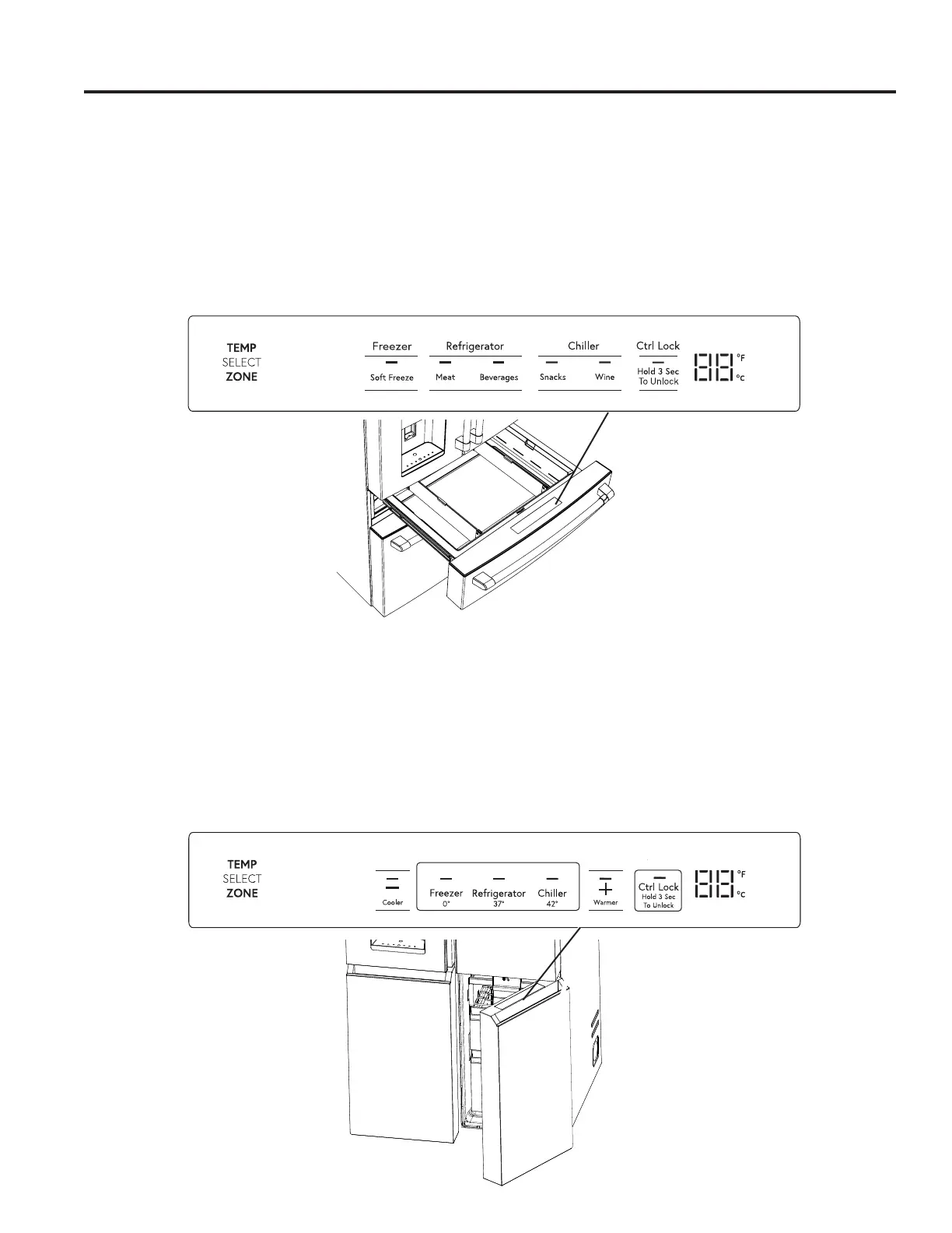 The Convertible Zone control panel is in the top of the lower right-hand door. Select the desired temperature for the