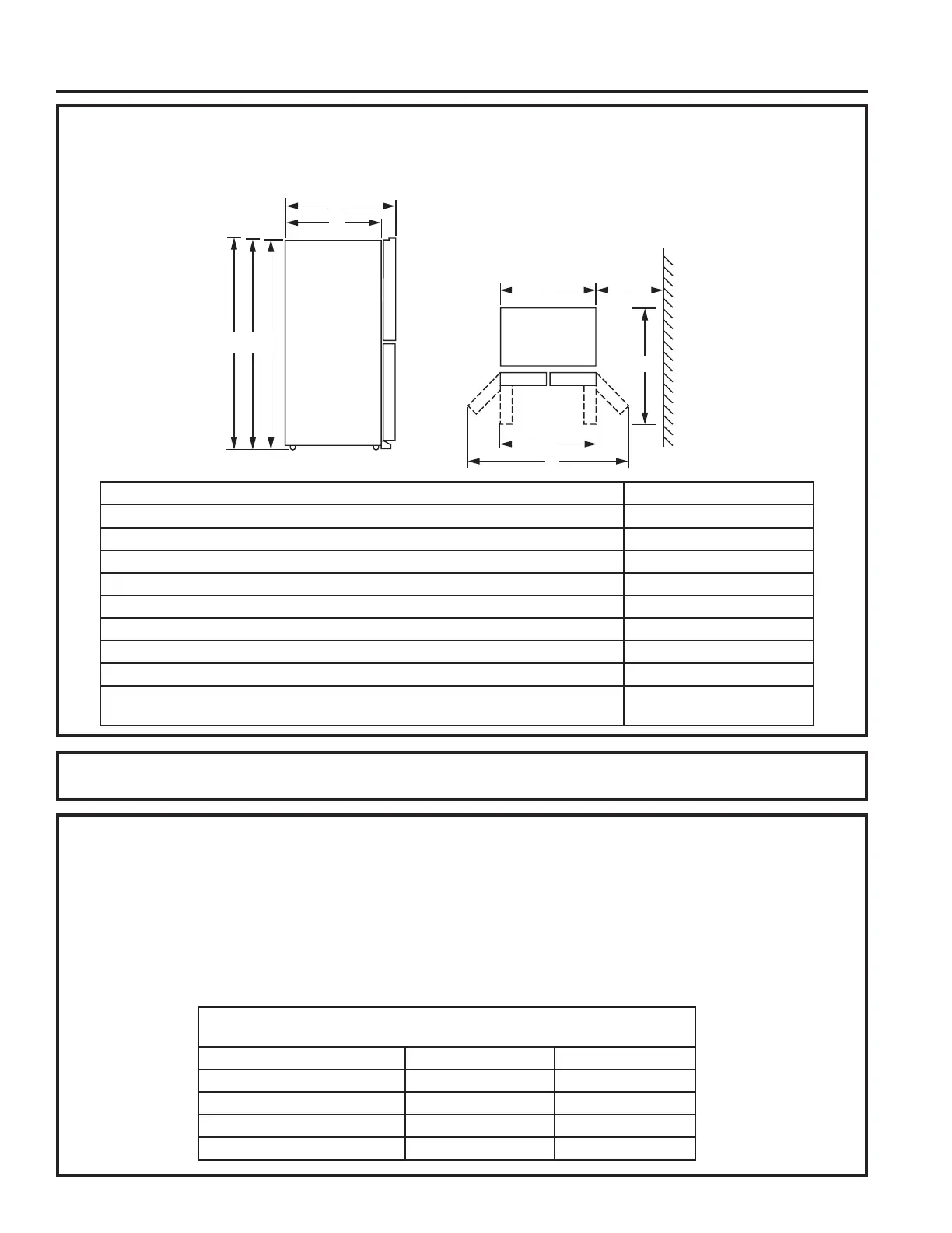 • Usando el siguiente cuadro, determine si el ancho de su pasillo es suficiente para la profundidad del refrigerador.