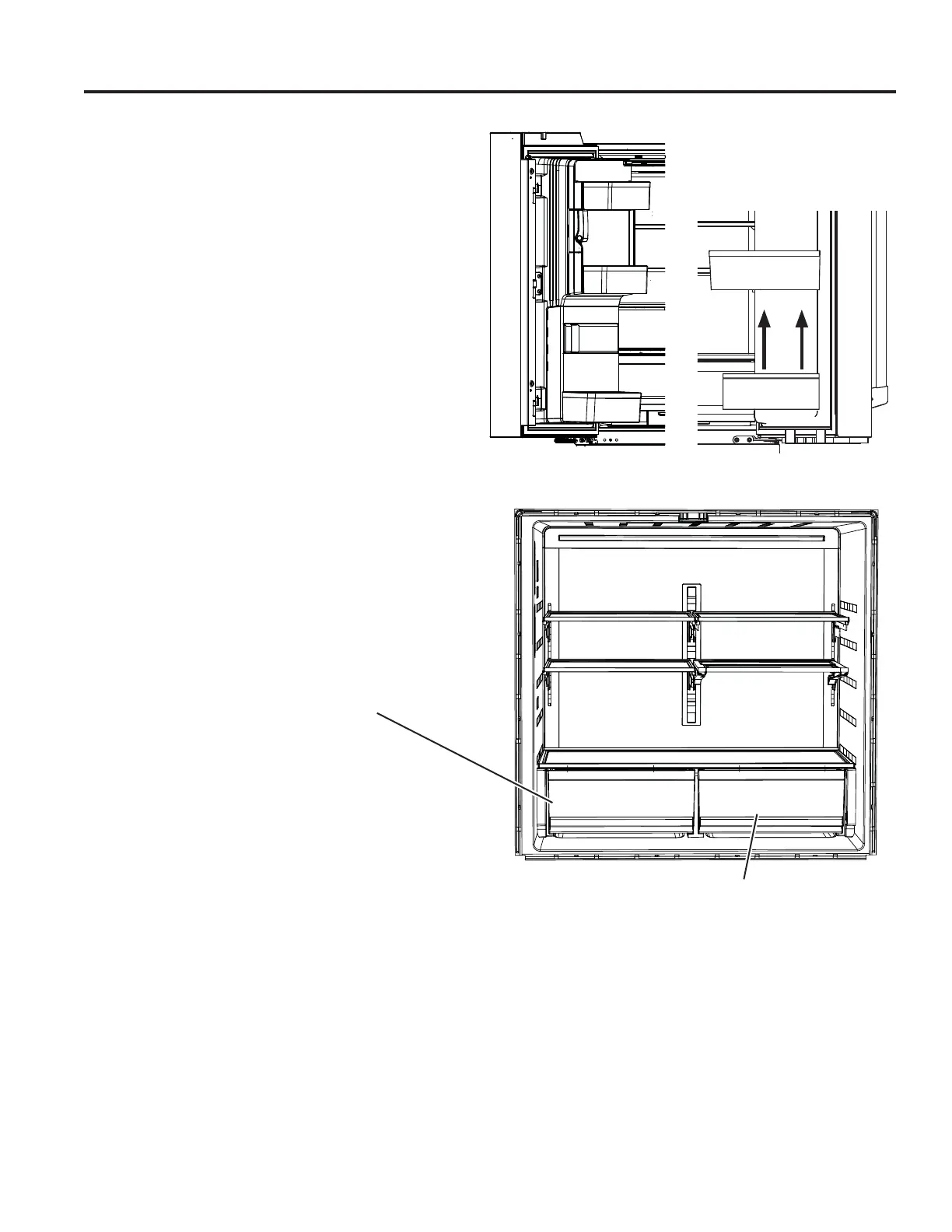 To remove: Lift bin straight up, then pull out. The door