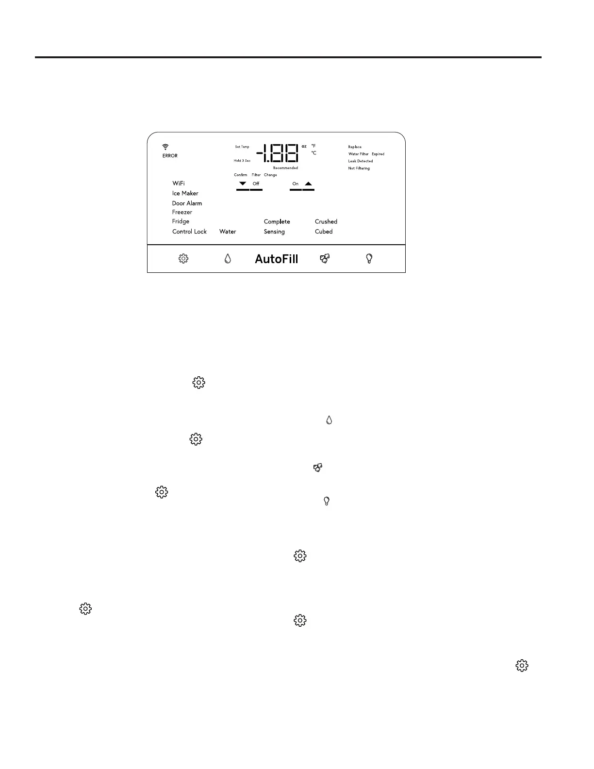 Ɣ Freezer (congélateur) - Pressez les boutons Haut ou Bas