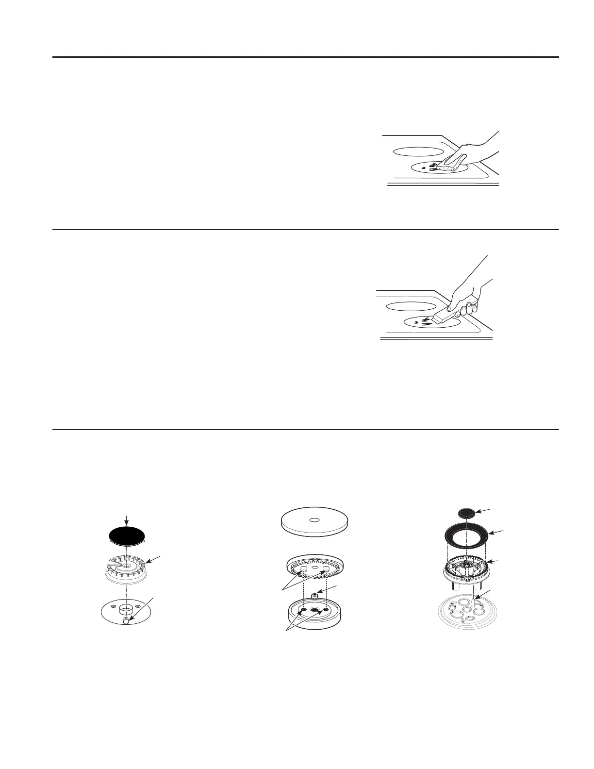 Turn all controls OFF. Allow cooktop to cool before removing grates and burner parts. When removing the burner