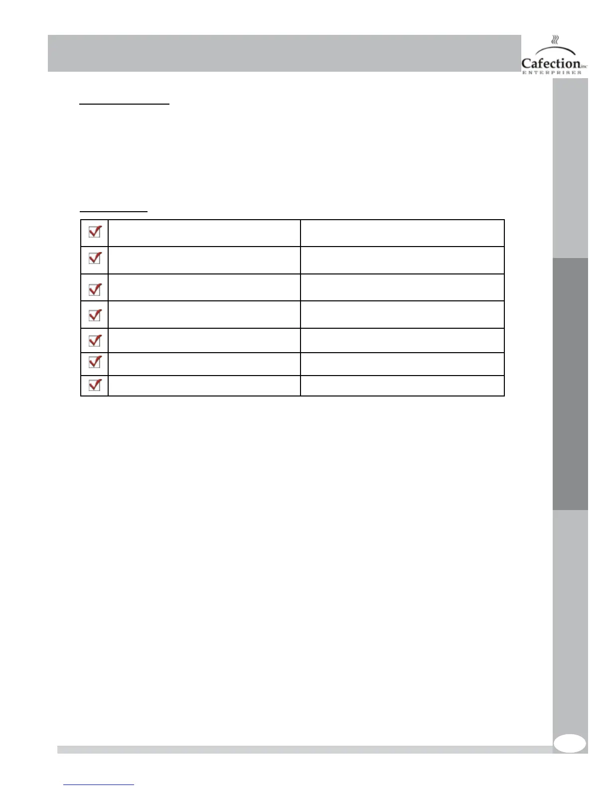thespecicationslaidoutinthismanual.Duringthisprocess,reviewthechecklistasareminder.