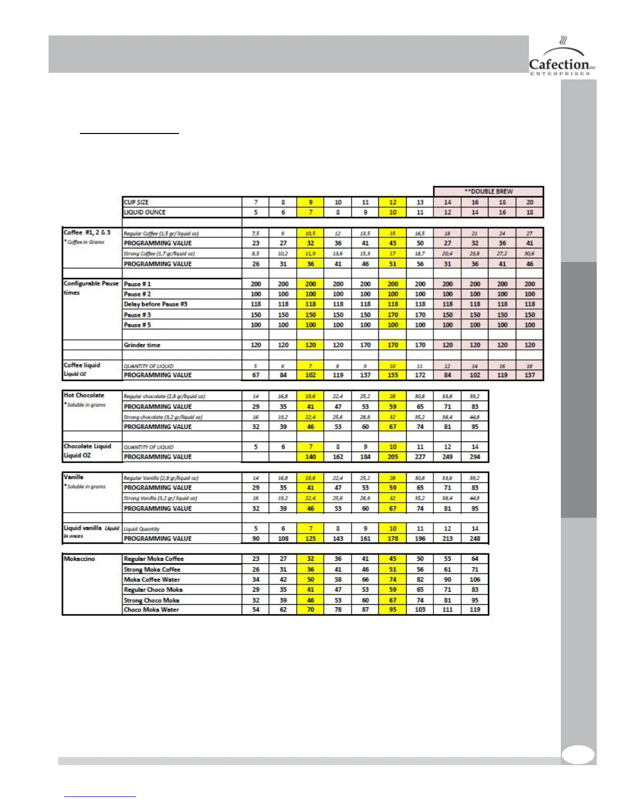Cafection Avalon Galleria - 4 SERVICE SOFWARE; 4.1 Programming charts