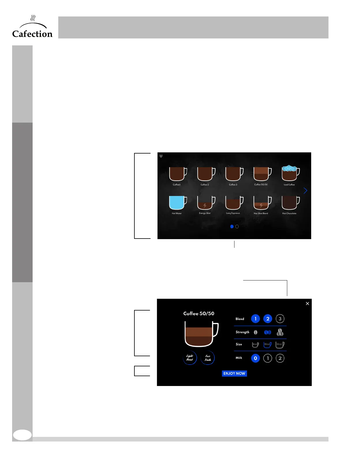2. Define beverage options (blend, strength, size and milk, if applicable).