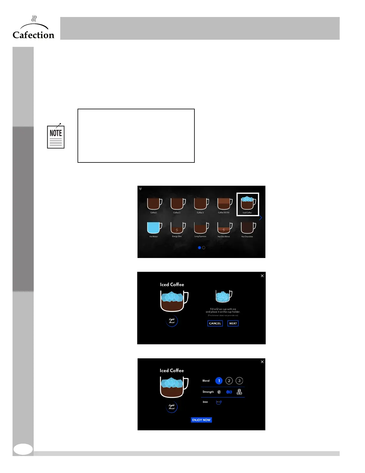 The brewer does not make ice. To order this beverage, an ice machine is required.