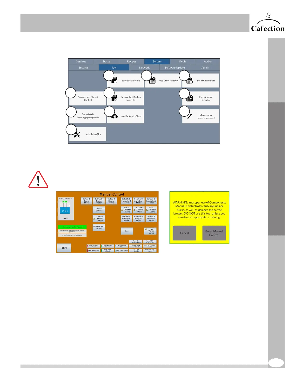 5. This button restores the latest backup file created on the coffee brewer. All the data