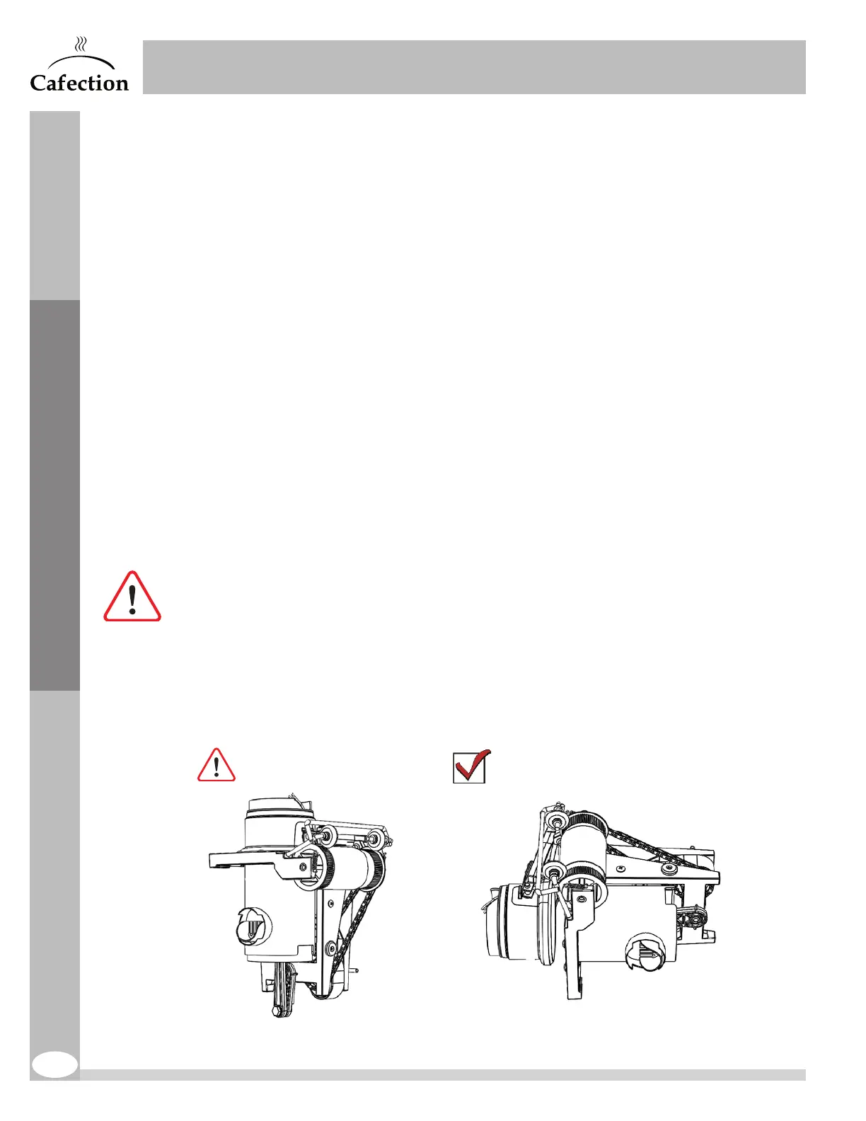 Do not sit the brew group on its right side (on the wheels and yoke) or straight up.