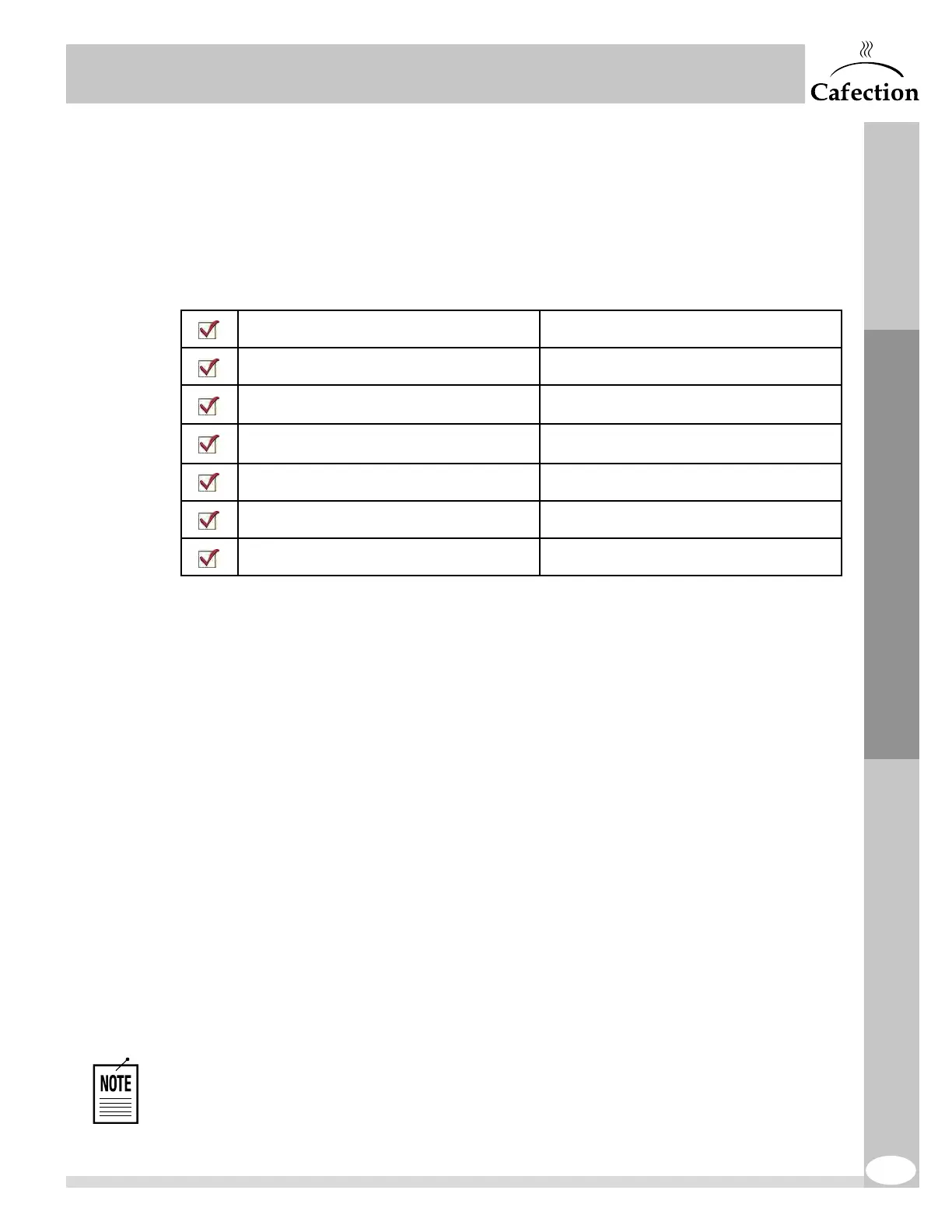 as per the specifications laid out in this manual. During this process, review the following checklist as a
