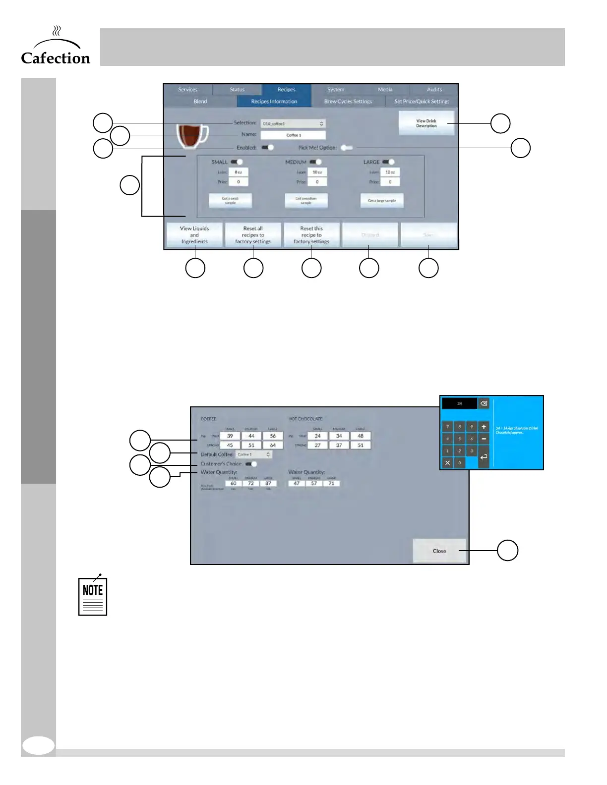 7. The Liquids and Ingredients interface is used to customize the quantity of each