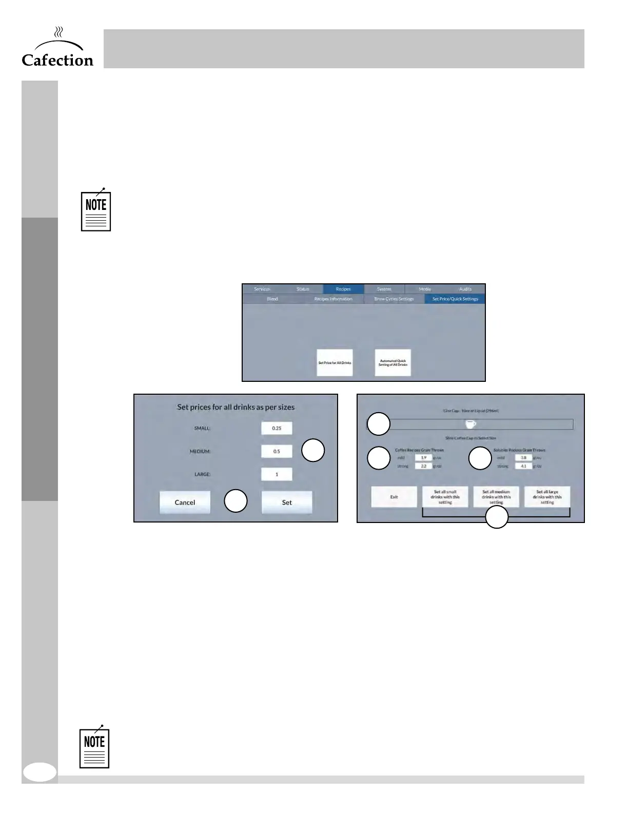 This interface is used to set all coffee drinks’ brew cycles. There is no individual
