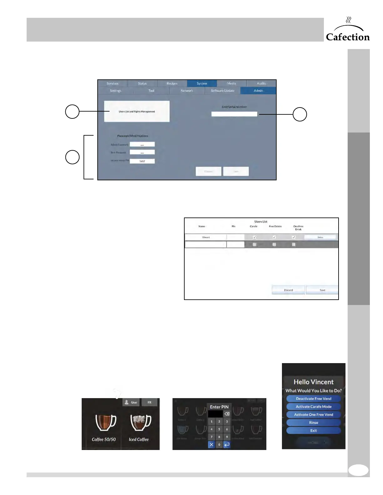 1. This button is used to create a list of users authorized to activate Carafe mode,