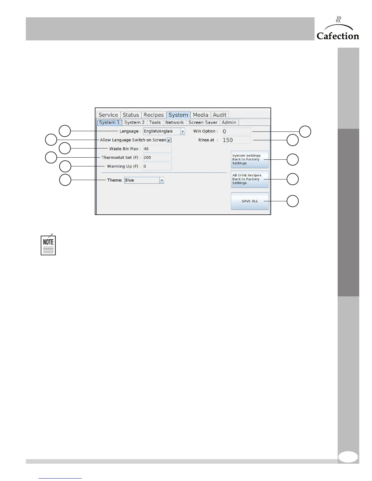9. This button is used to reset the System1 and System2 sub tabs back to factory settings.