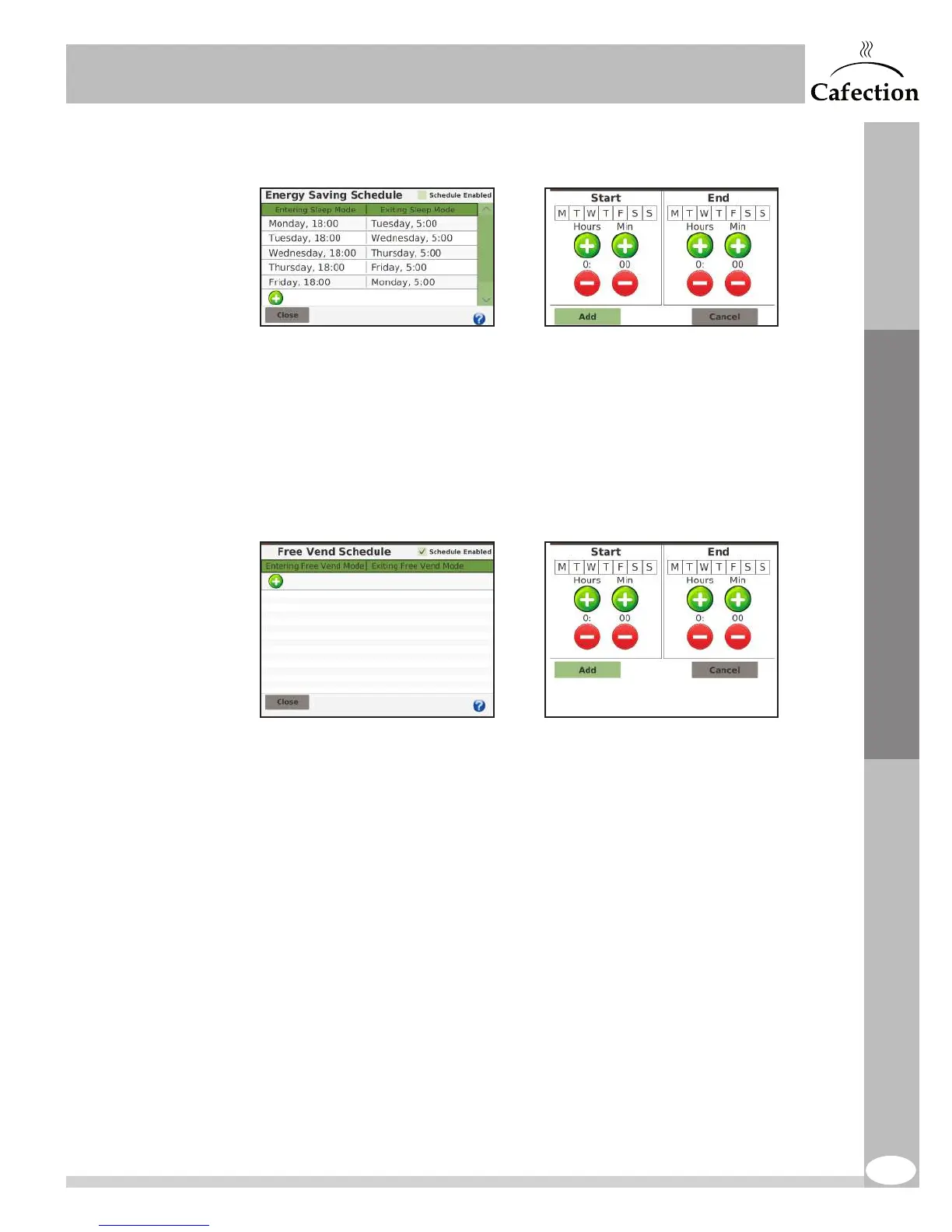 This interface is used to plan Free Vend periods. By pressing the (+) and (-) buttons,