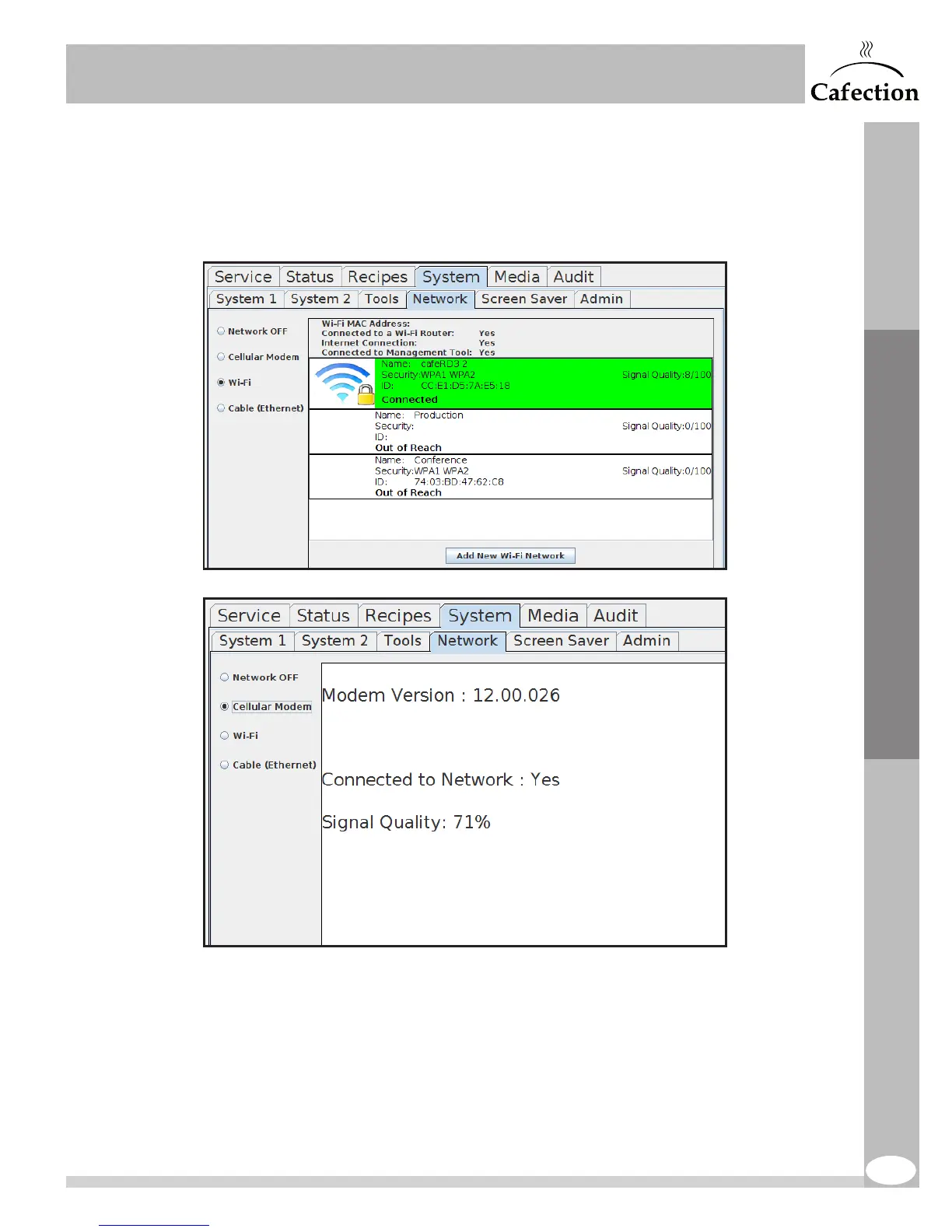 This section is used to connect the brewer to the internet. Use the checkboxes on the left
