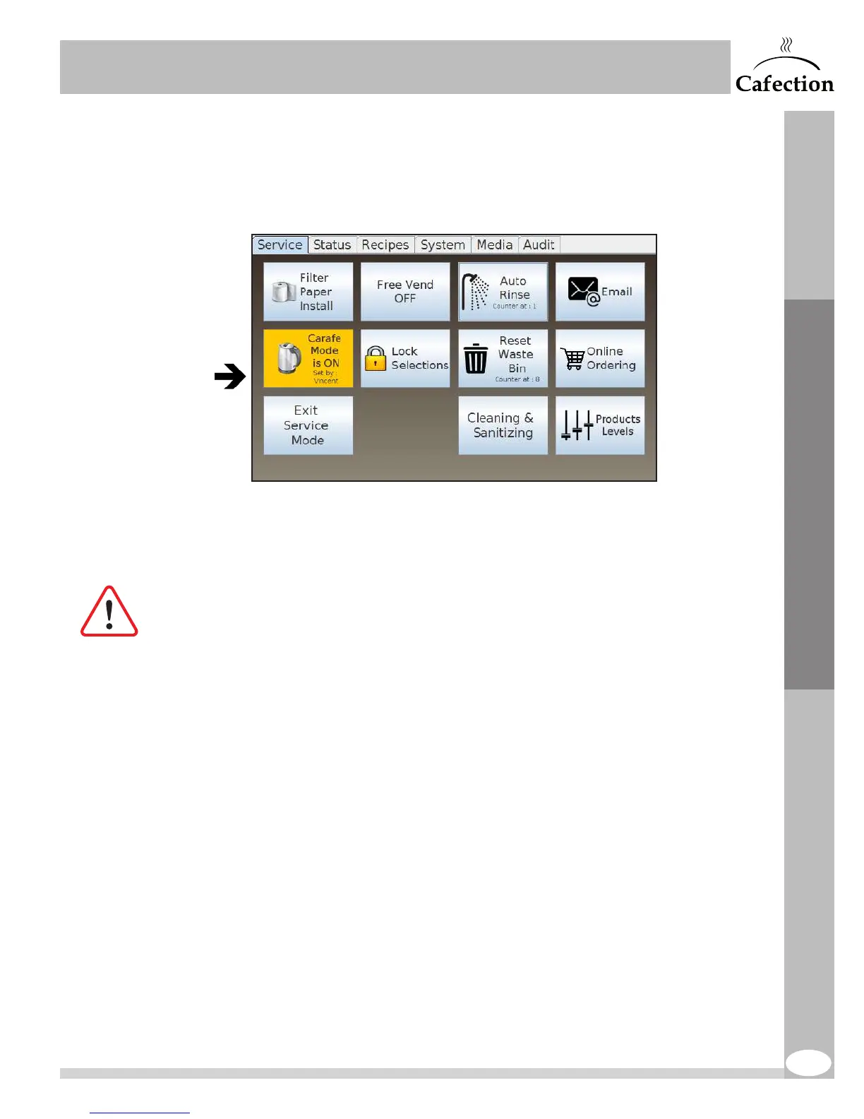 When a user activates the Free Vend or Carafe mode, the related button in Service mode