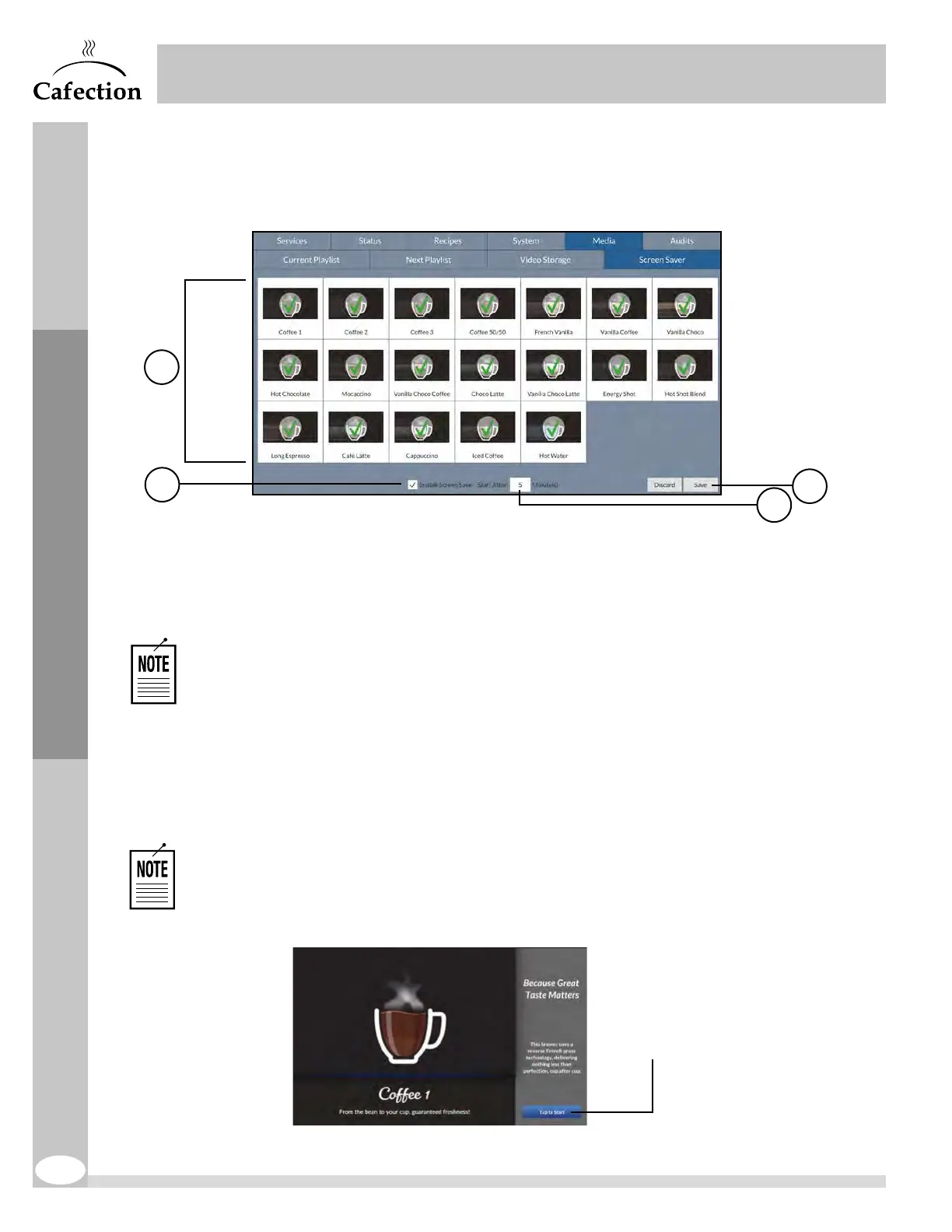 1. Select the beverage(s) to be displayed while the screen saver is ON. A green