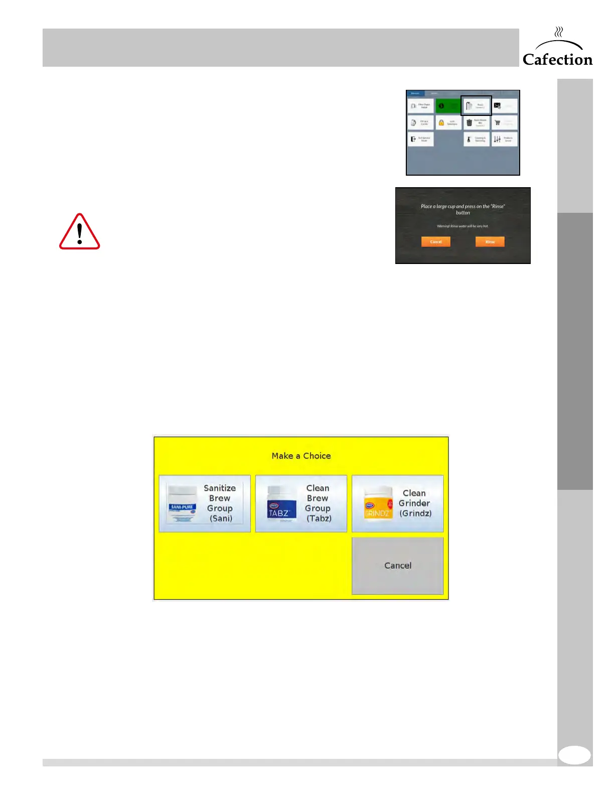 To perform a rinse, access the Service mode, press the