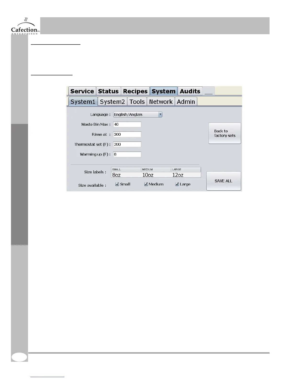 7. These buttons are used to enable or disable each size of coffee cups. If only one size is available,
