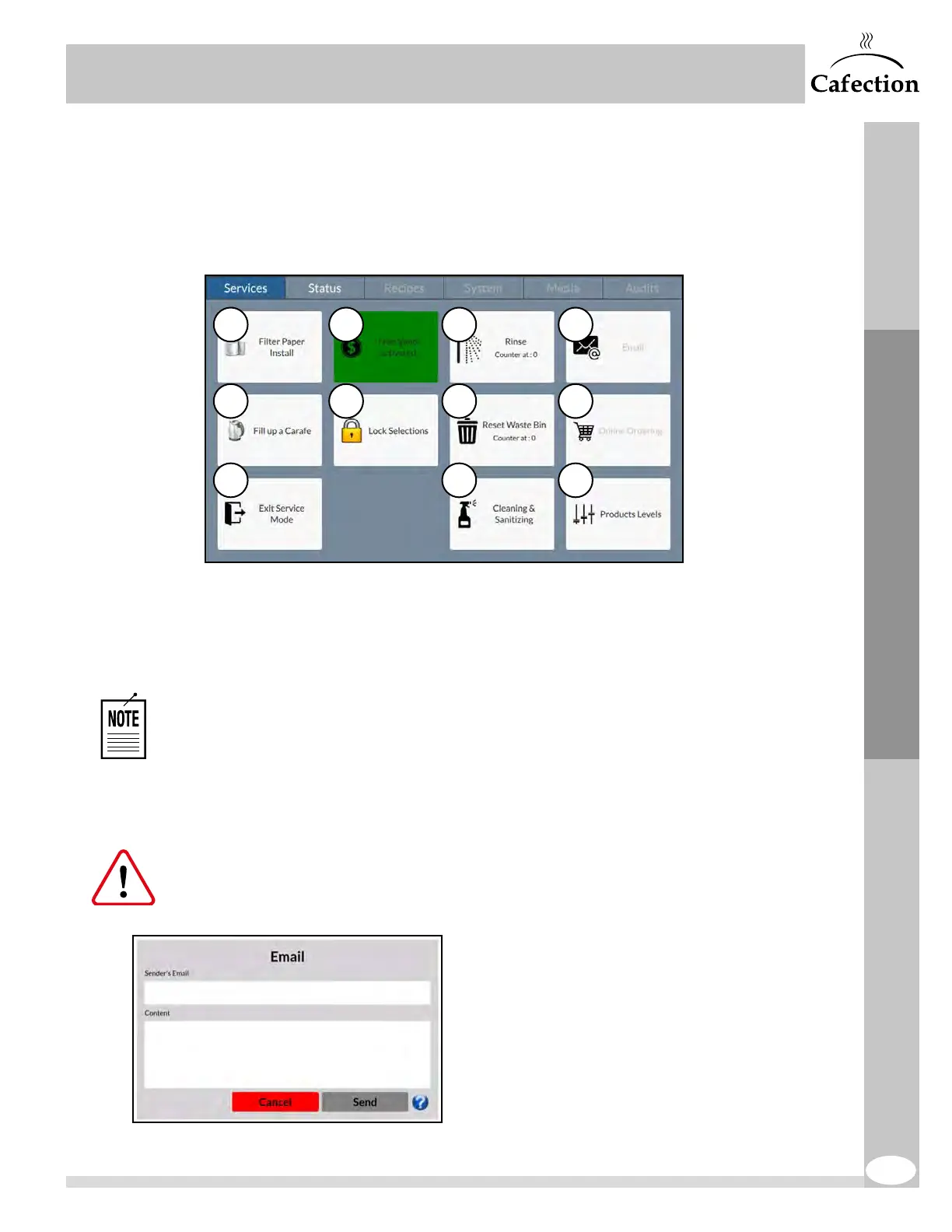 2. This button is used to activate Free Vend mode. When the brewer is in Free Vend mode, the