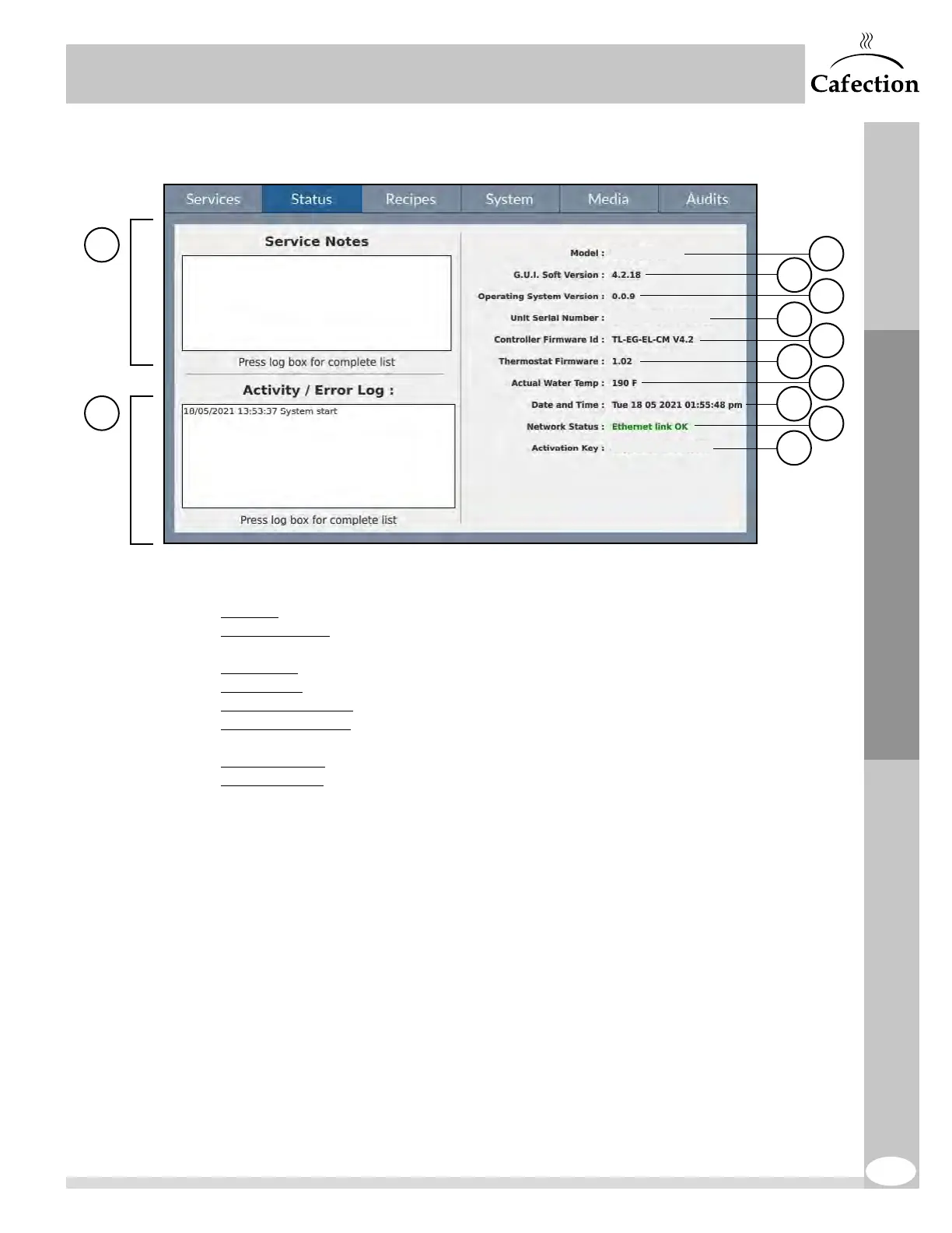 11. Activation key of the brewer. It is used to register the machine on Sophia.
