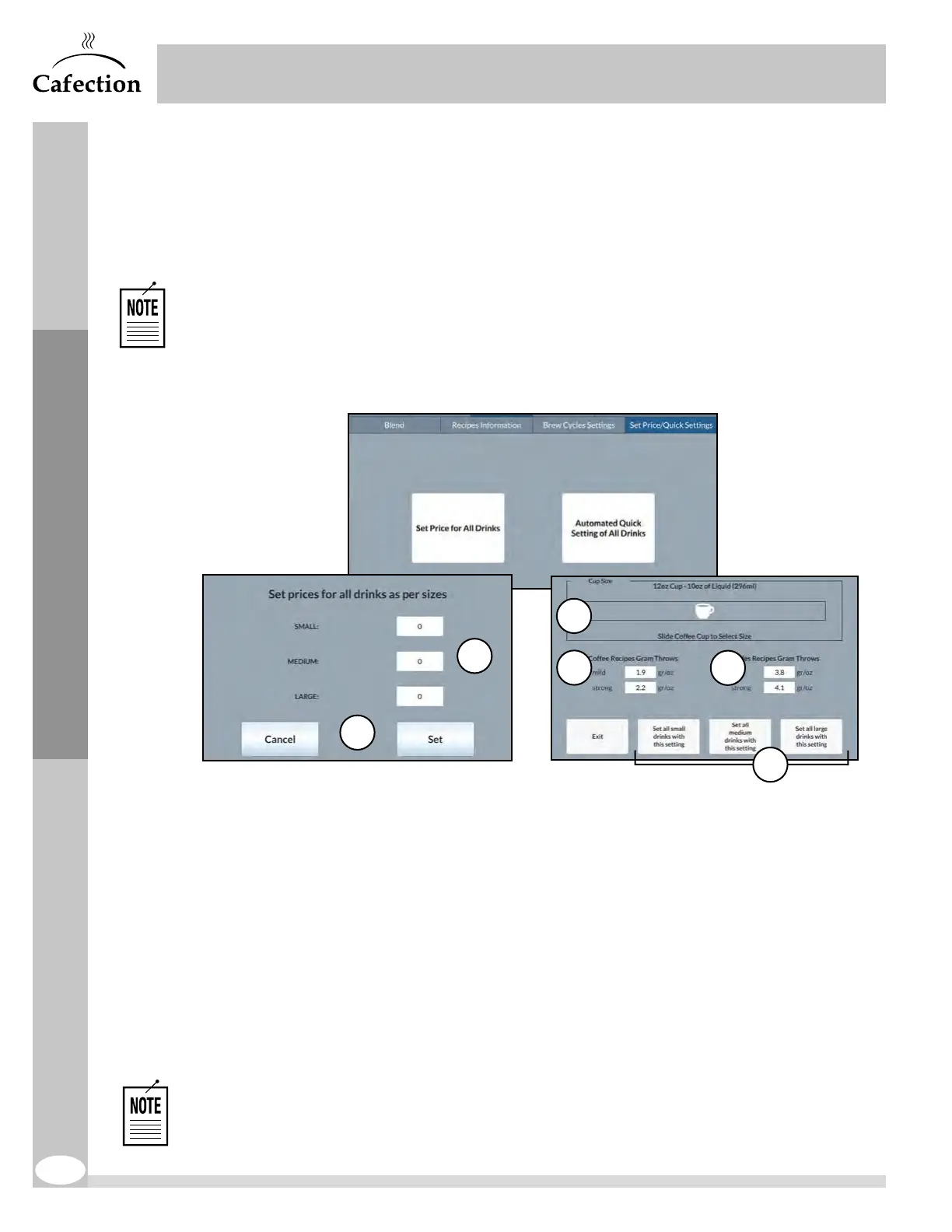This interface is used to set all coffee drinks' brew cycles. There is no individual