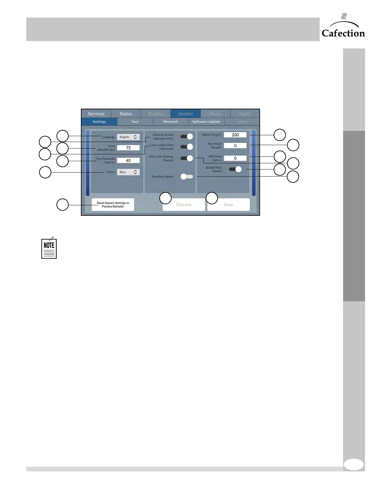 7. This button is used to reset the systemSettings sub tab back to factory settings. This action