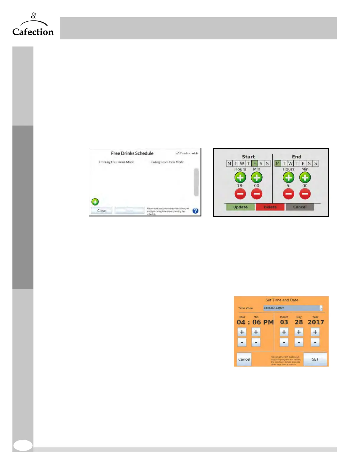 This interface is used to plan Free Vend periods. By pressing the (+) and (-) buttons,