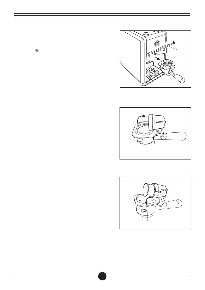 • Alzare la leva (1) ed estrarre il portacapsule (2)