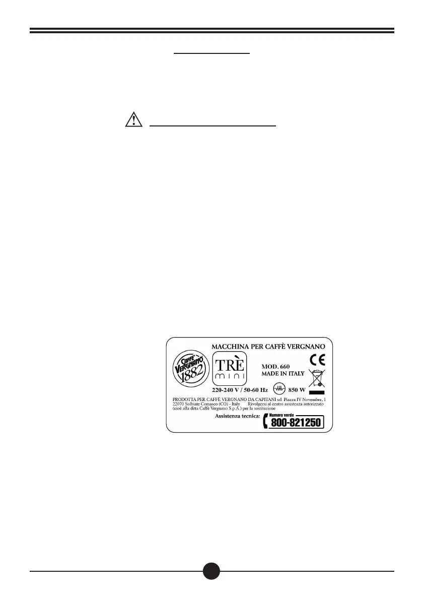 • Collegare la macchina da caffè unicamente ad allacciamenti di rete idonei, con presa a