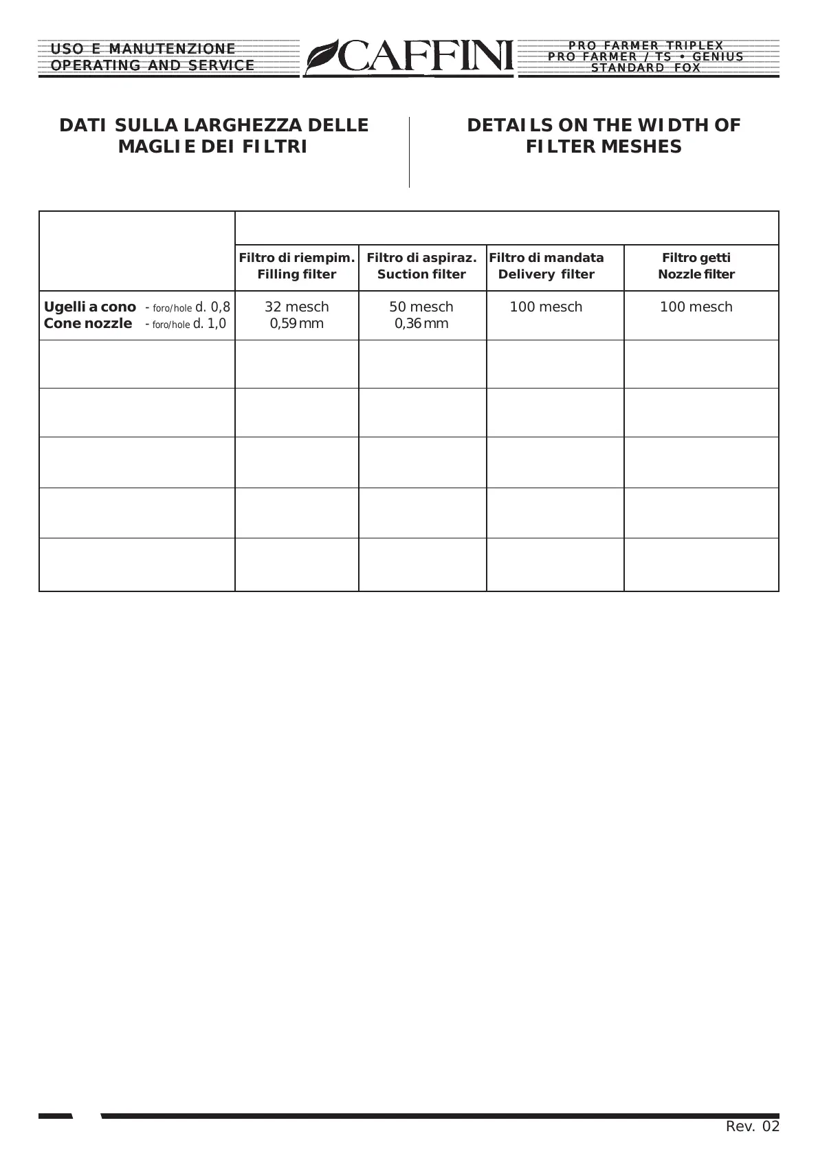 LARGHEZZA MAGLIE / WIDTH OF FILTER MESHES