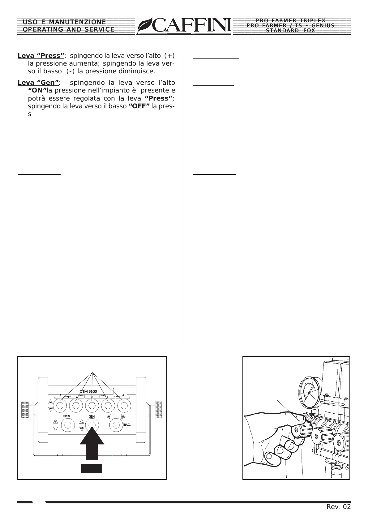 Leva “Press”: spingendo la leva verso l’alto (+)