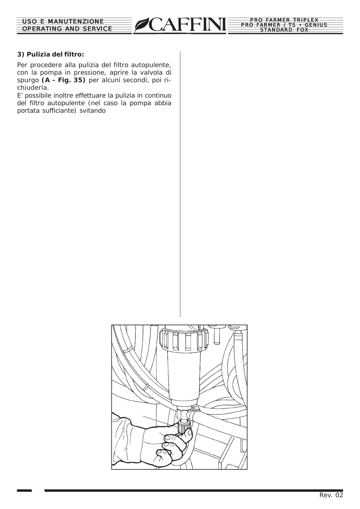 vola di spurgo (A - Fig. 35) del filtro stesso.