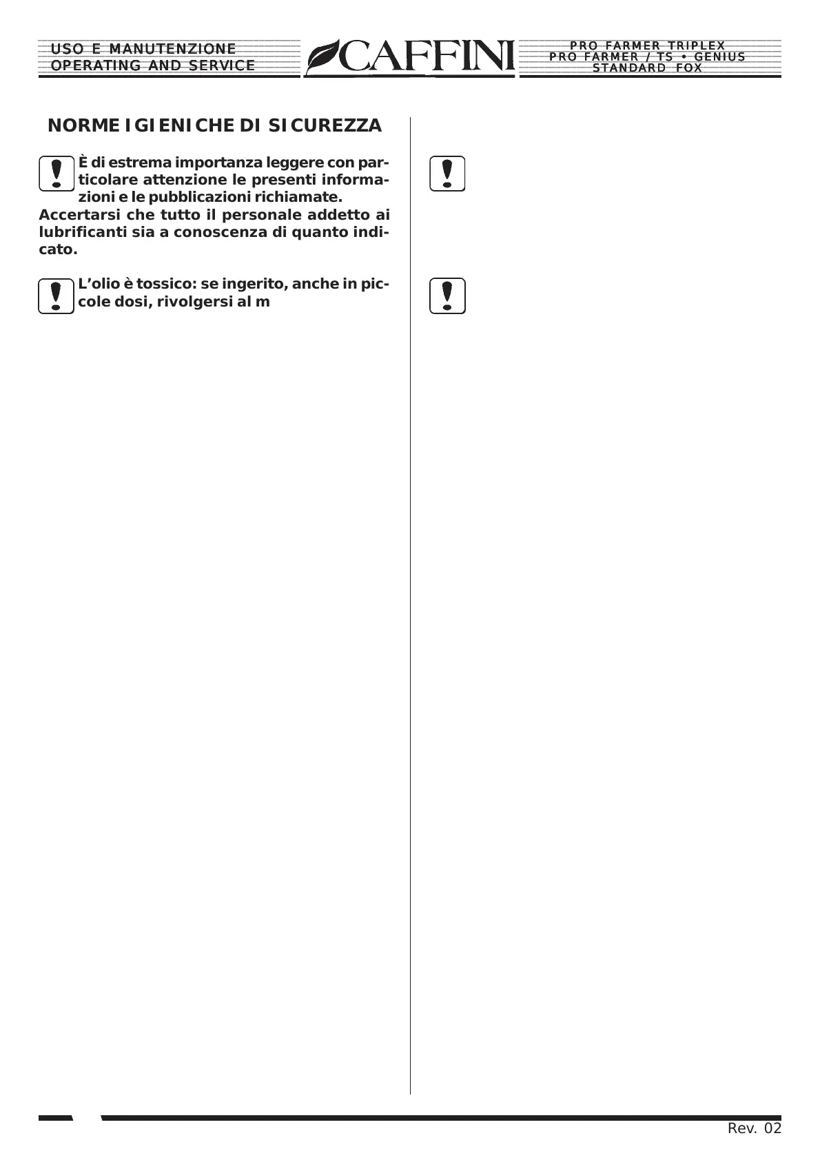 USO E MANUTENZIONE USO E MANUTENZIONE