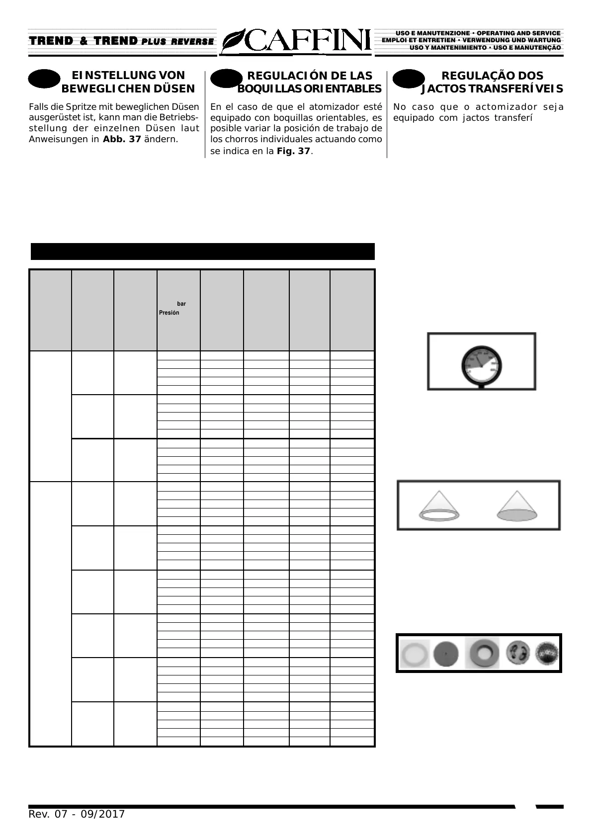 TABLA DE CONSUMO DE LAS BOQUILLAS / TABELA DE CONSUMO DOS JACTOS
