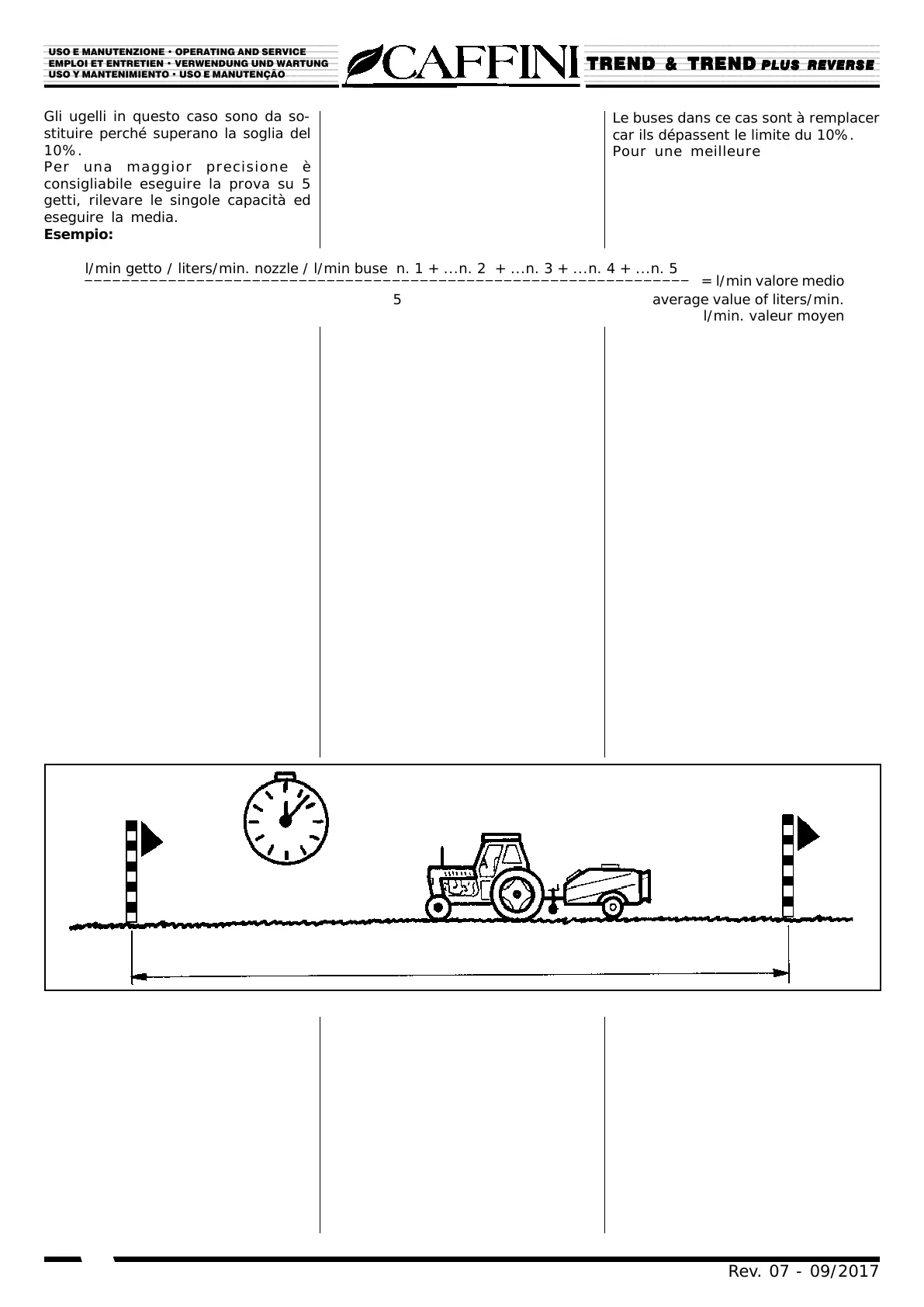 l/min getto / liters/min. nozzle / l/min buse n. 1 + ...n. 2 + ...n. 3 + ...n. 4 + ...n. 5