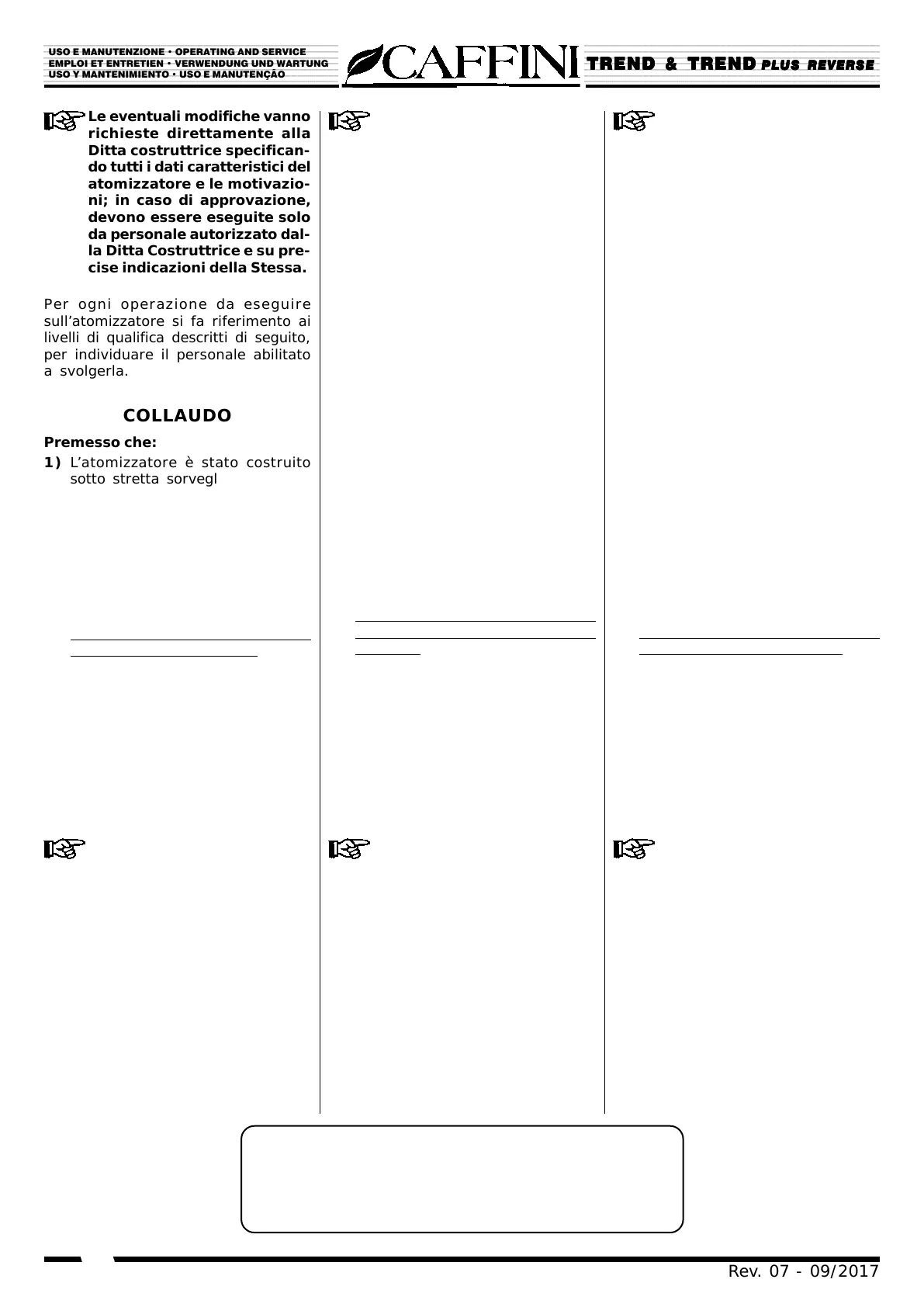 USO E MANUTENZIONE • OPERATING AND SERVICE