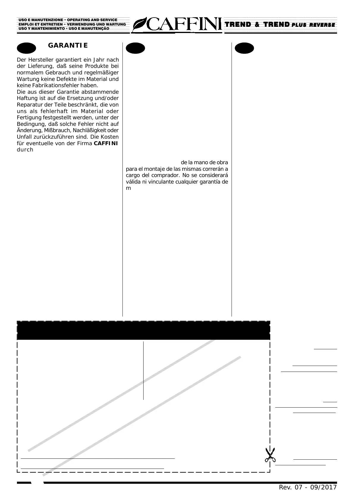 GARANTIESCHEIN - CERTIFICADO DE GARANTÍA - CERTIFICADO DE GARANTIA
