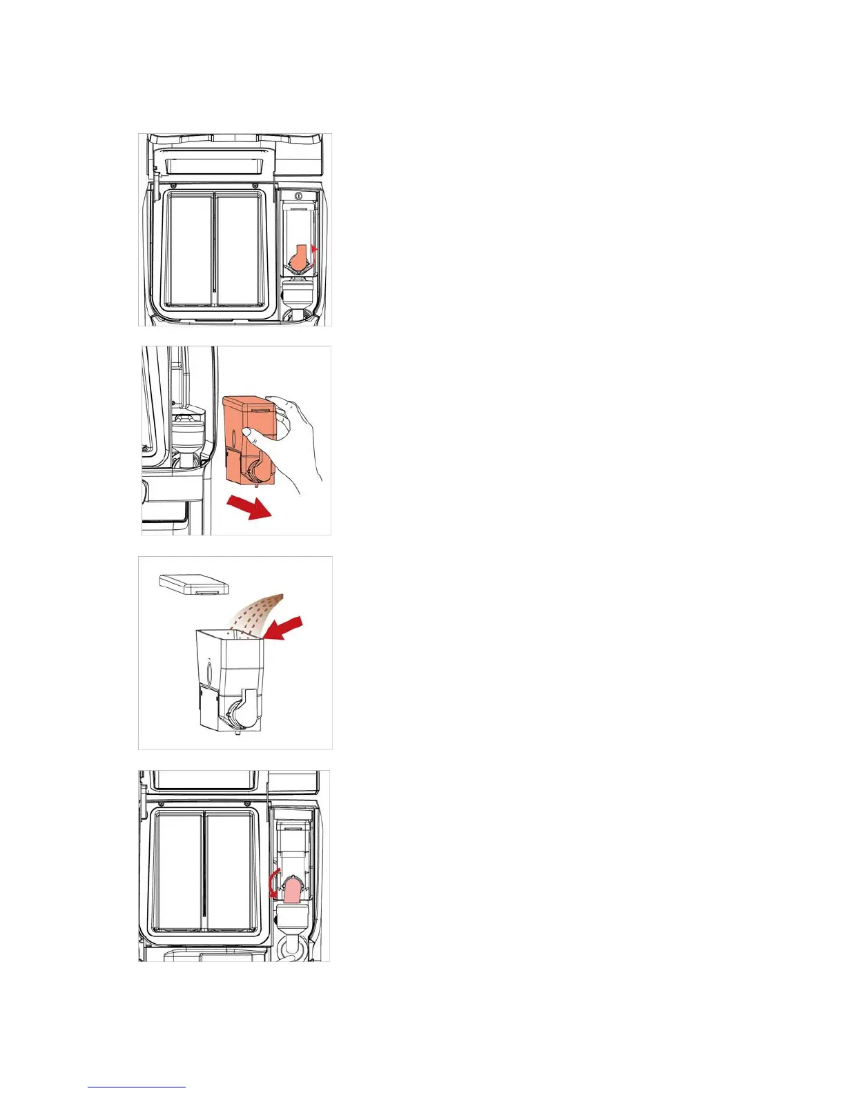 1. Open the door of the dispenser, rotate the canister outlet upwards to