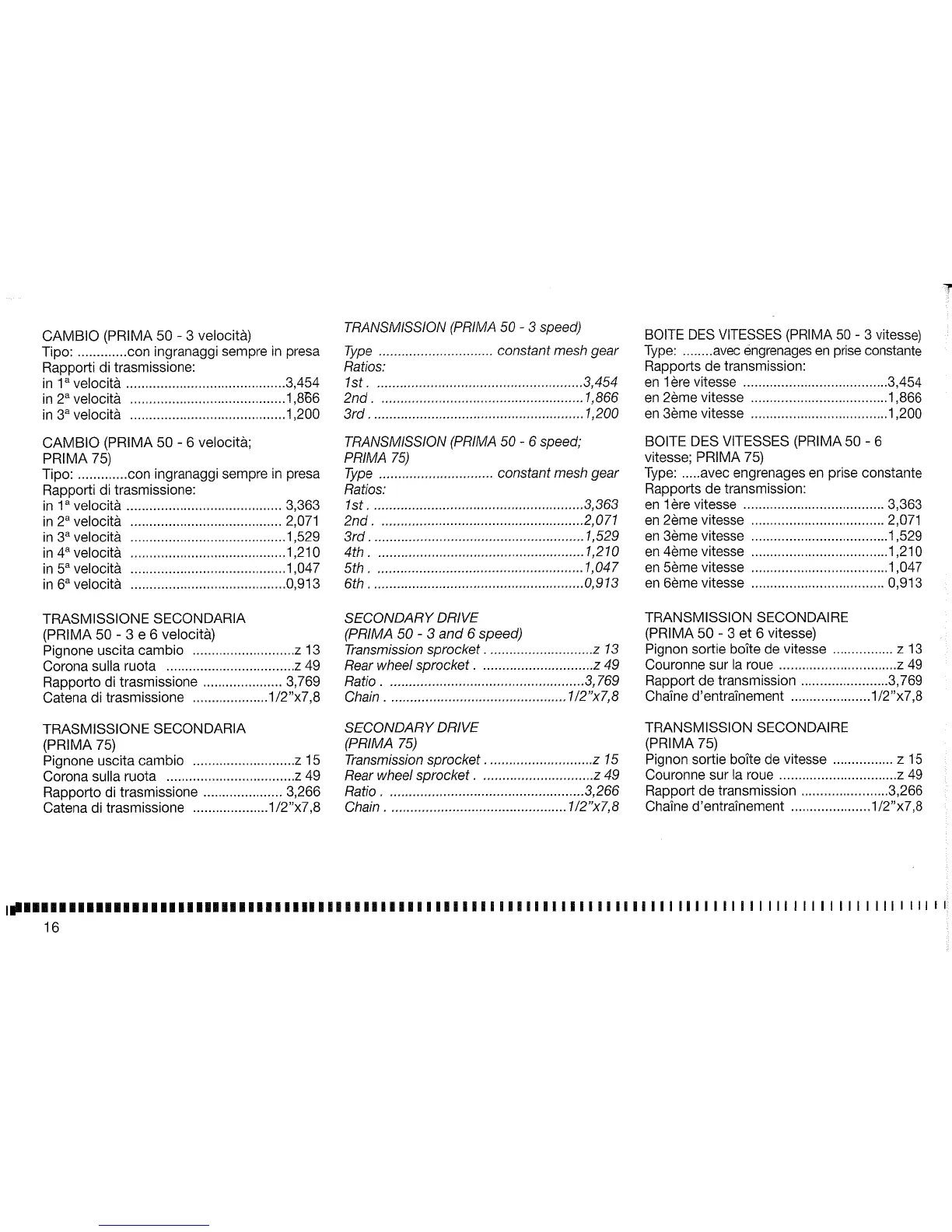 Cagiva Prima 50 - Gearbox and Transmission Ratios
