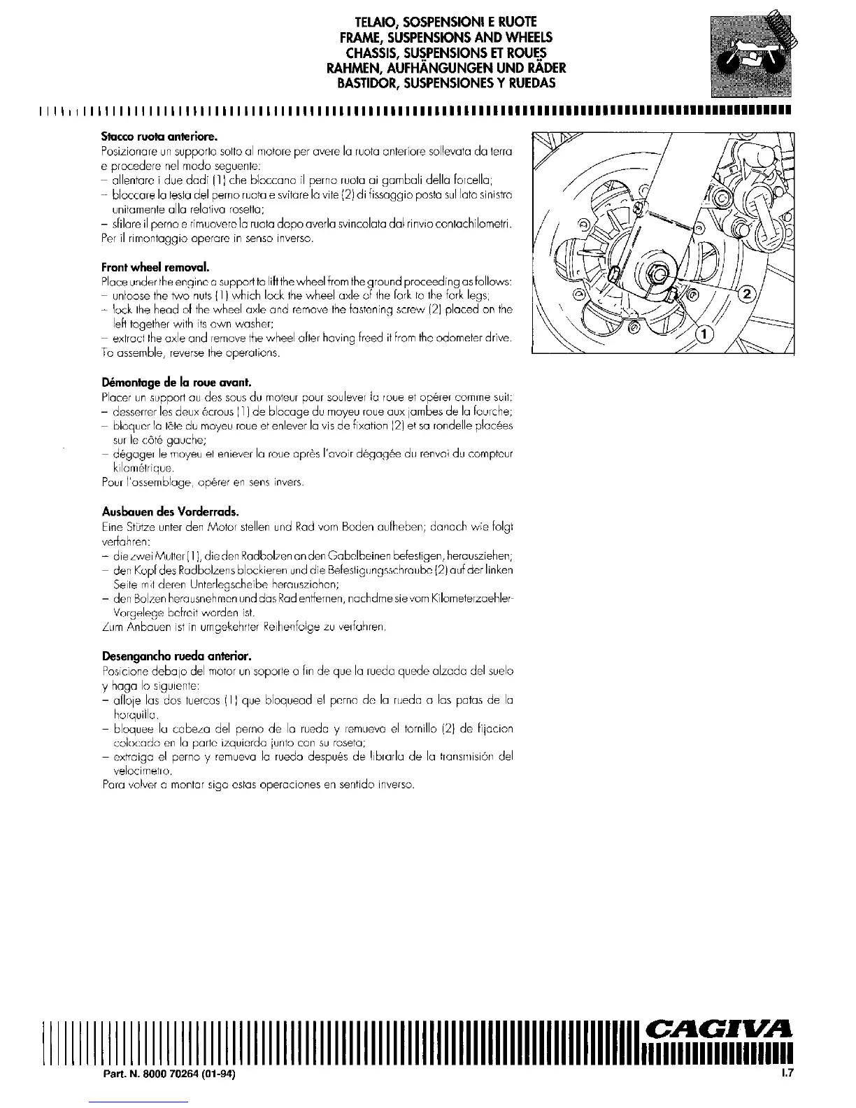 Cagiva Roadster 521 - Front Wheel Removal