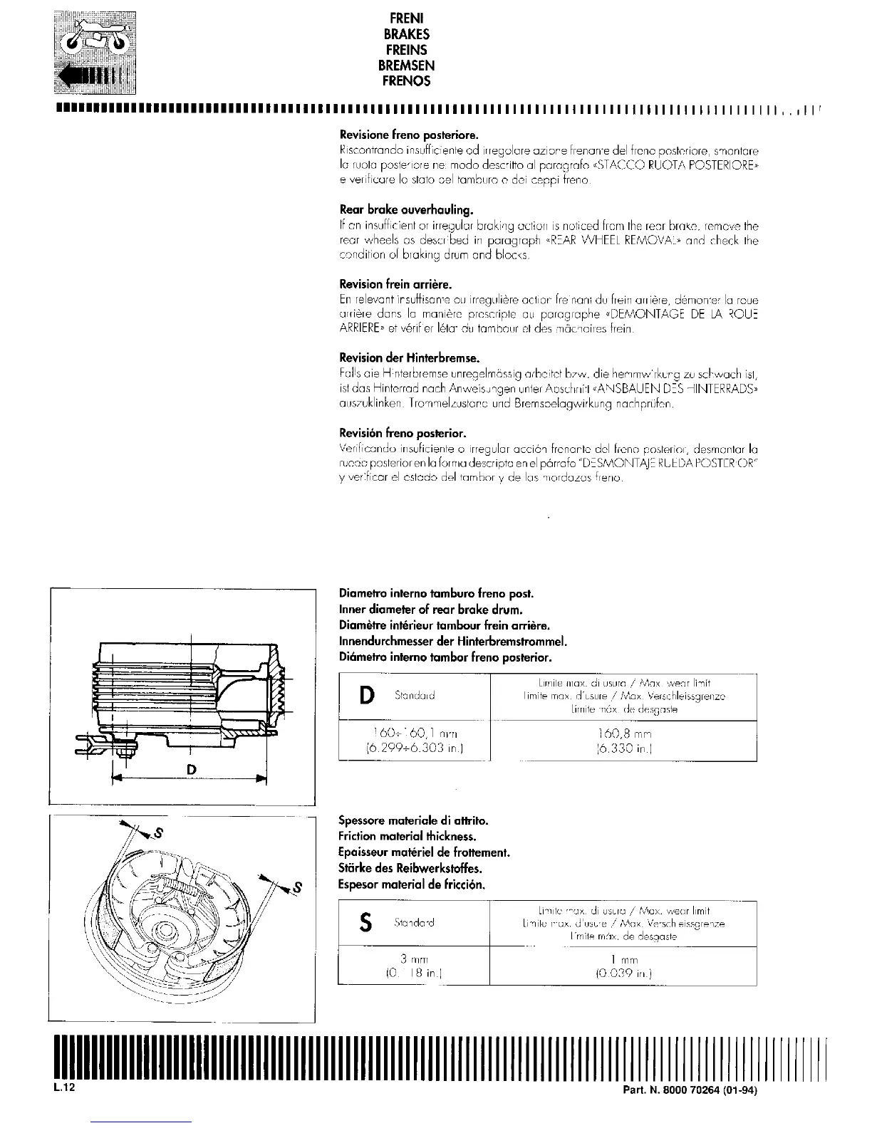 Cagiva Roadster 521 - Rear Brake Overhauling; Inner Diameter of Rear Brake Drum