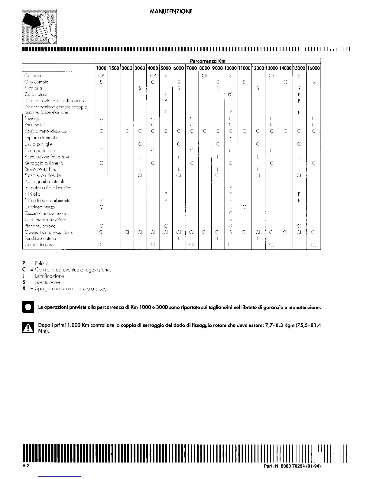 Cagiva Roadster 521 - Maintenance Schedule