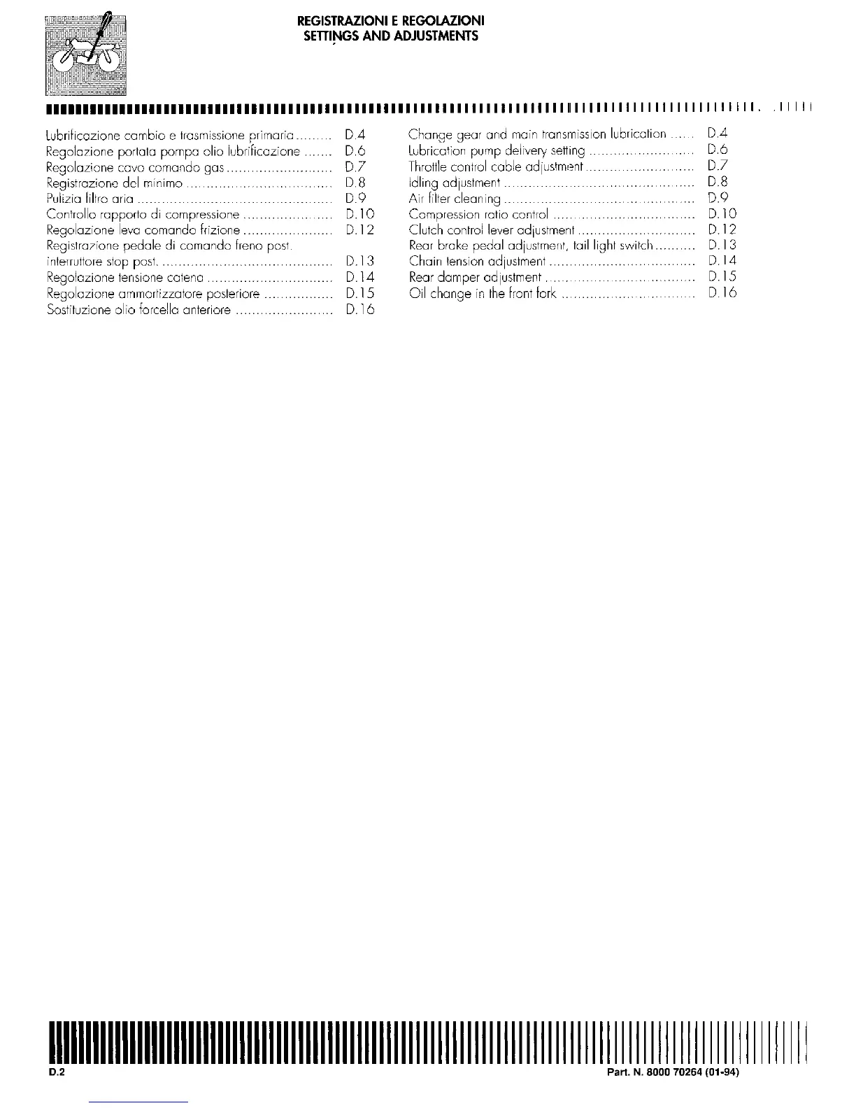 Cagiva Roadster 521 - Lubrication and Fuel System Adjustments; Throttle and Carburettor Adjustments