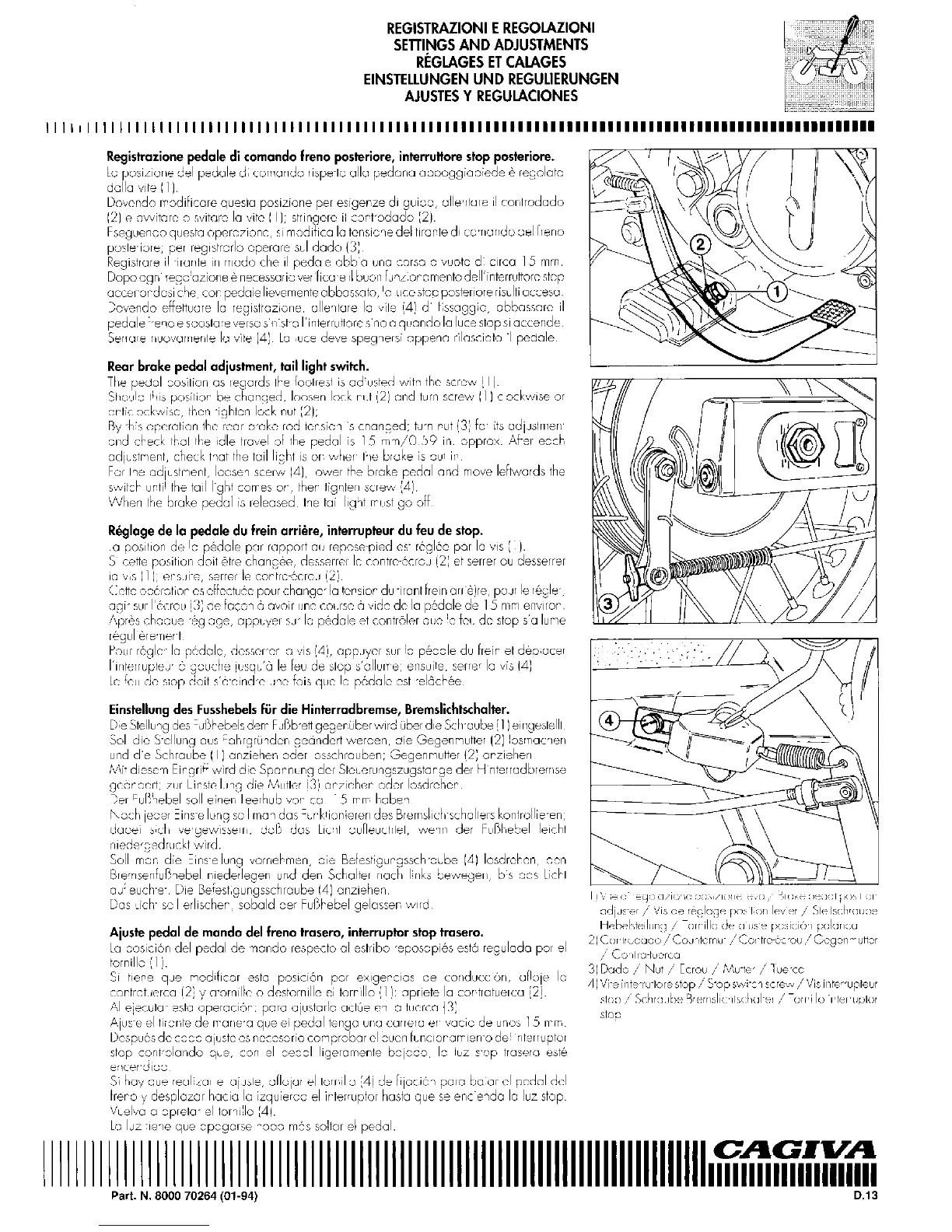 Cagiva Roadster 521 - Rear Brake Pedal Adjustment, Tail Light Switch